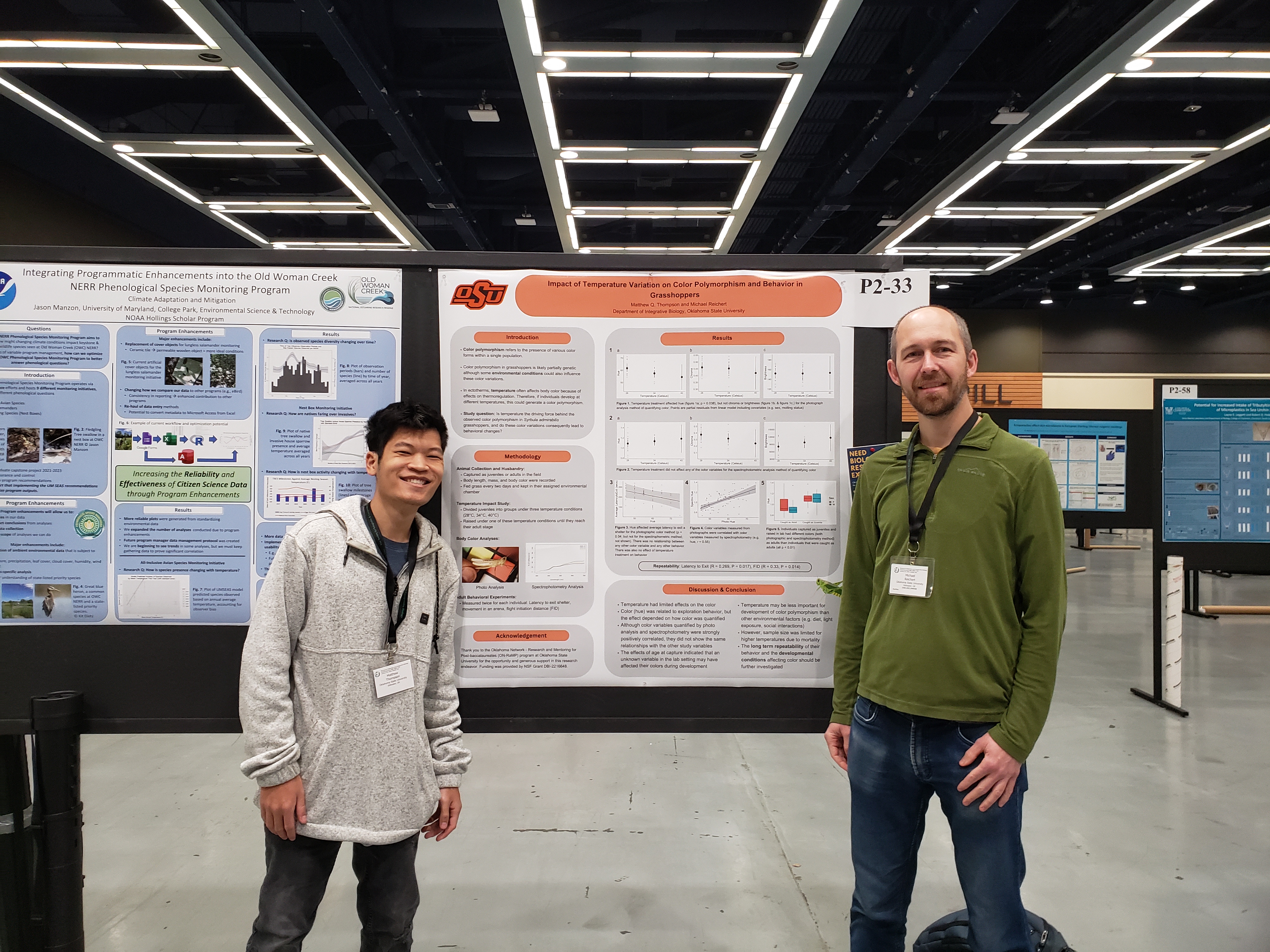 Matthew Thompson and Michael Reichert traveled to Seattle for SICB 2024. Here we are in front of Matthew’s poster: