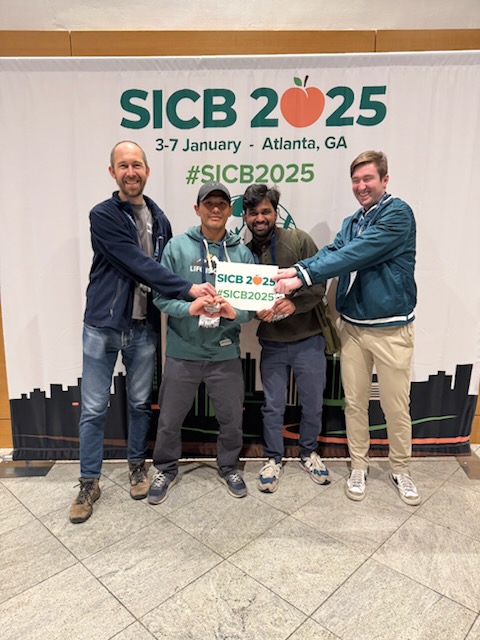 Above, Alejandro, Jain, Elena, and the current Reichert lab in action at SICB 2025 in Atlanta.